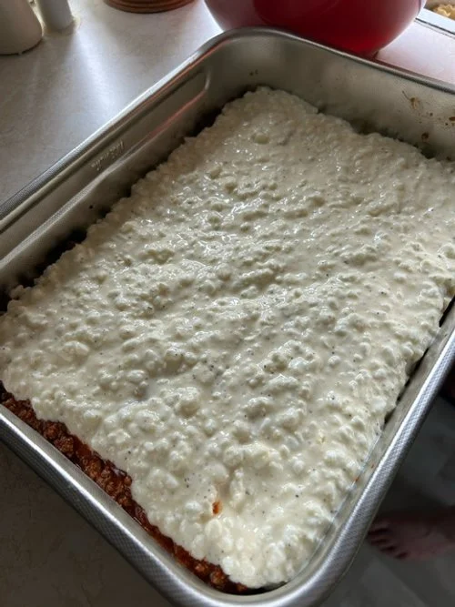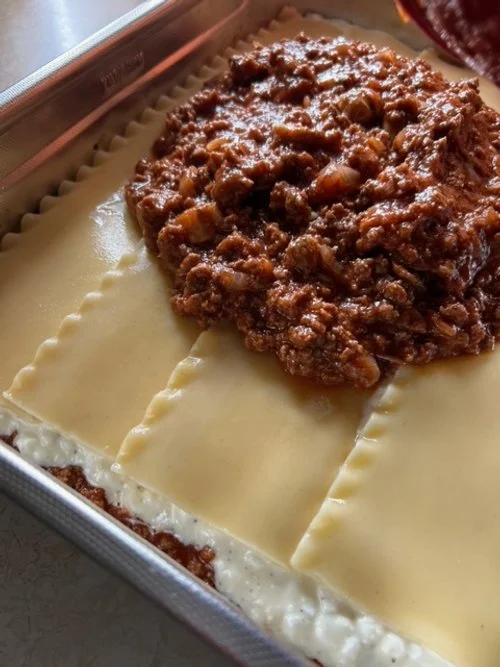 “This is my mom‘s lasagna recipe. It was always my favourite as a child, and it continues to be a favourite amongst the family and all of the grandchildren. I’ll warn you now, whenever we visit she is forced to make it, so make this with caution knowing that you may be forced to make it for the rest of your life. It’s very simple with regular everyday ingredients and feeds a large group. We love comfort food, and from my family to yours, bon appétit! enjoy! ♥️”