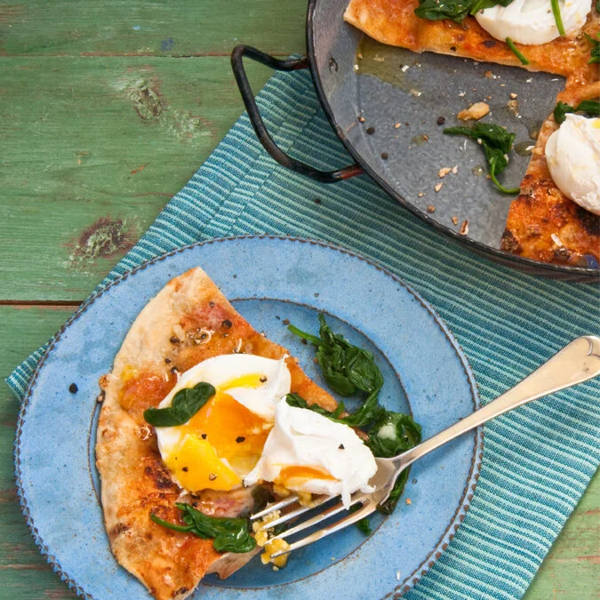 approx. 4 minutes.Arrange the poached eggs on the Tortilla.
