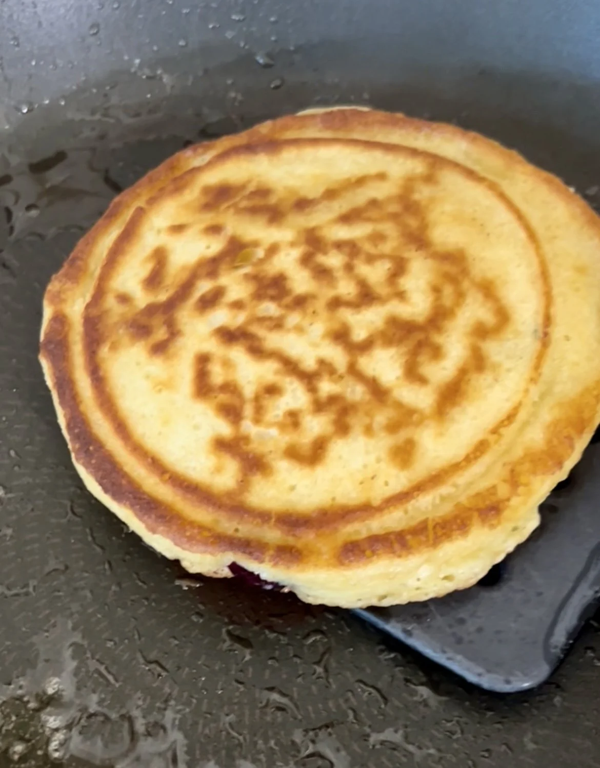 Blueberries – Placing the fresh blueberries into the batter while cooking will let them go soft as it heats up.