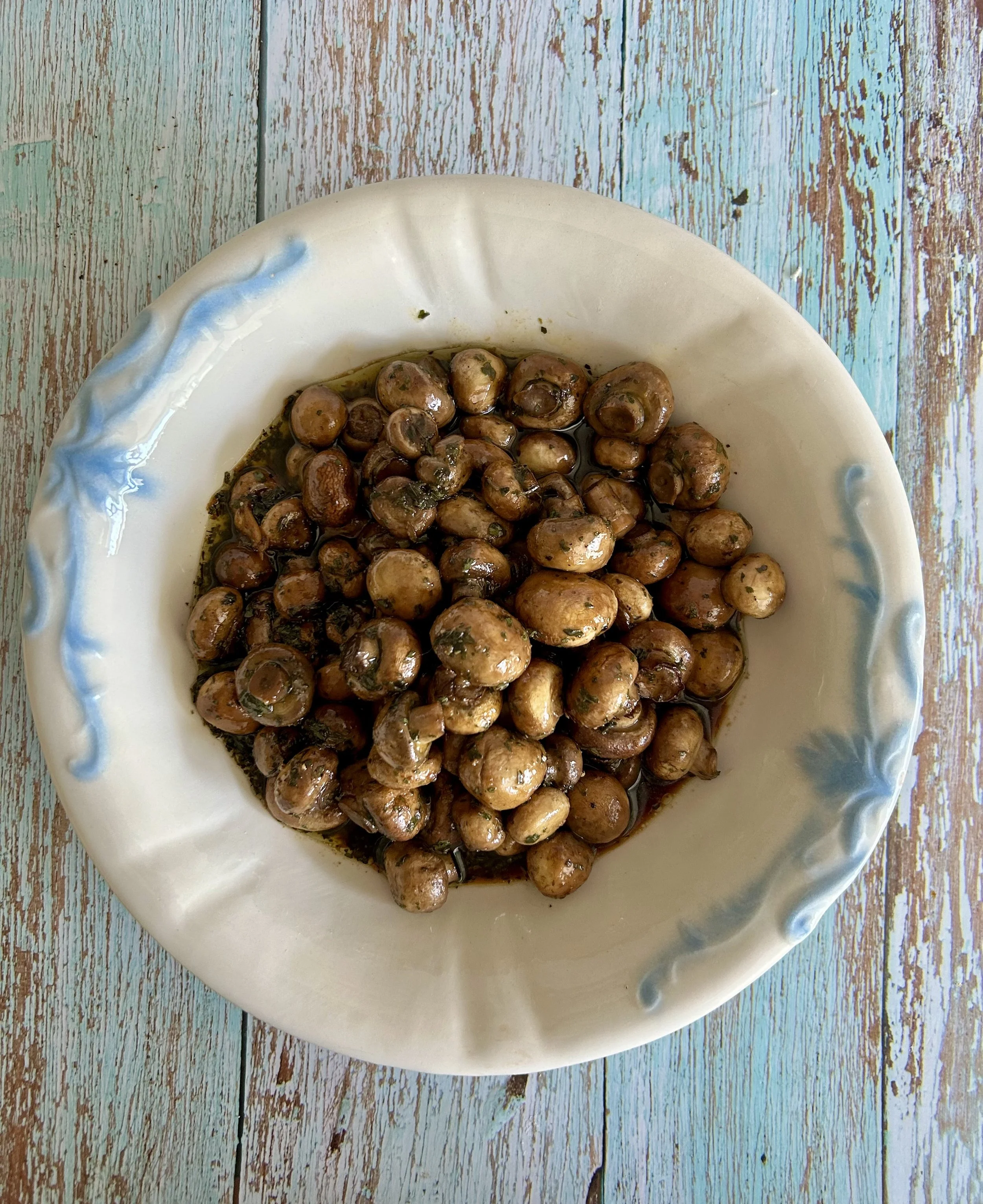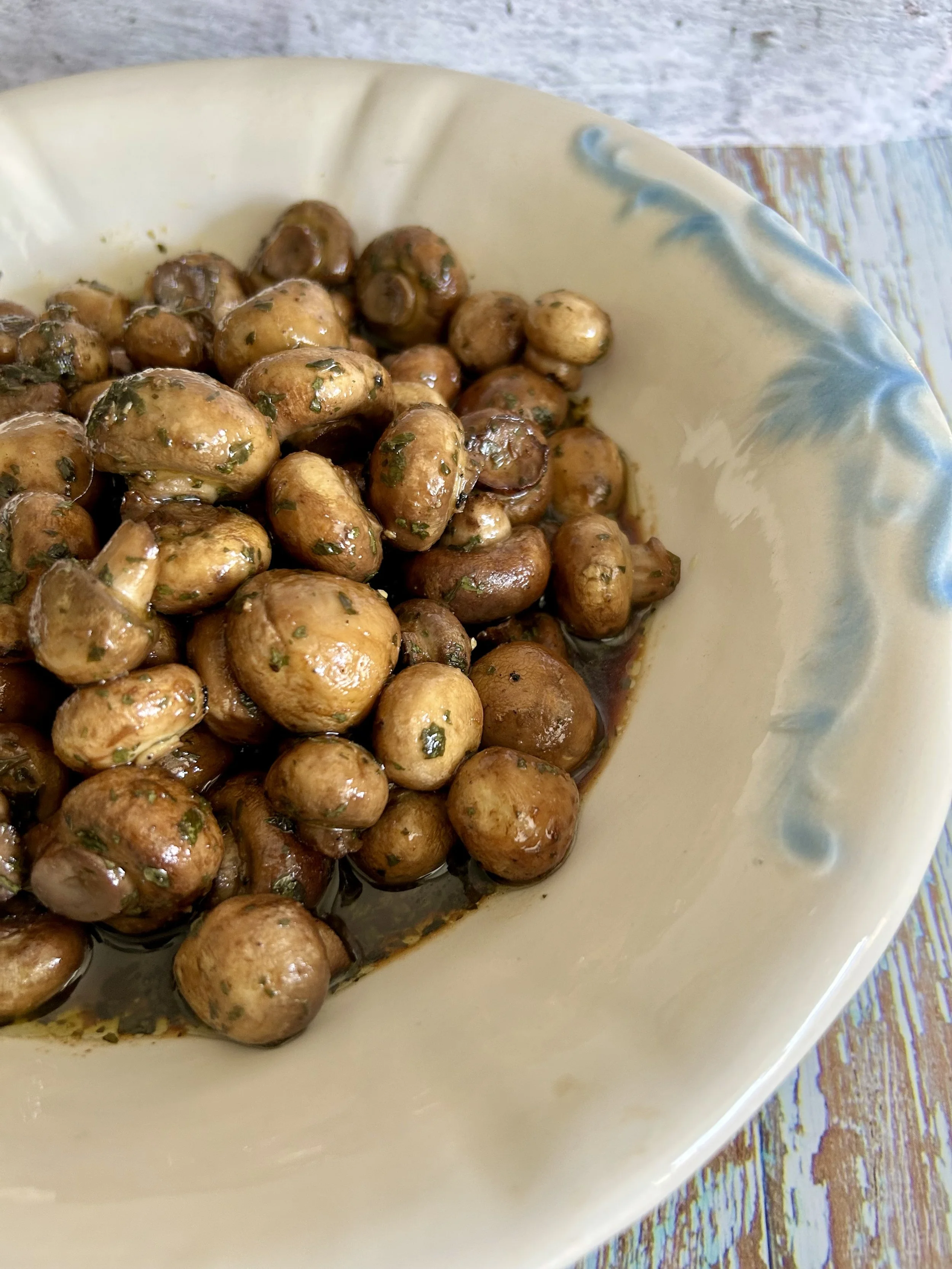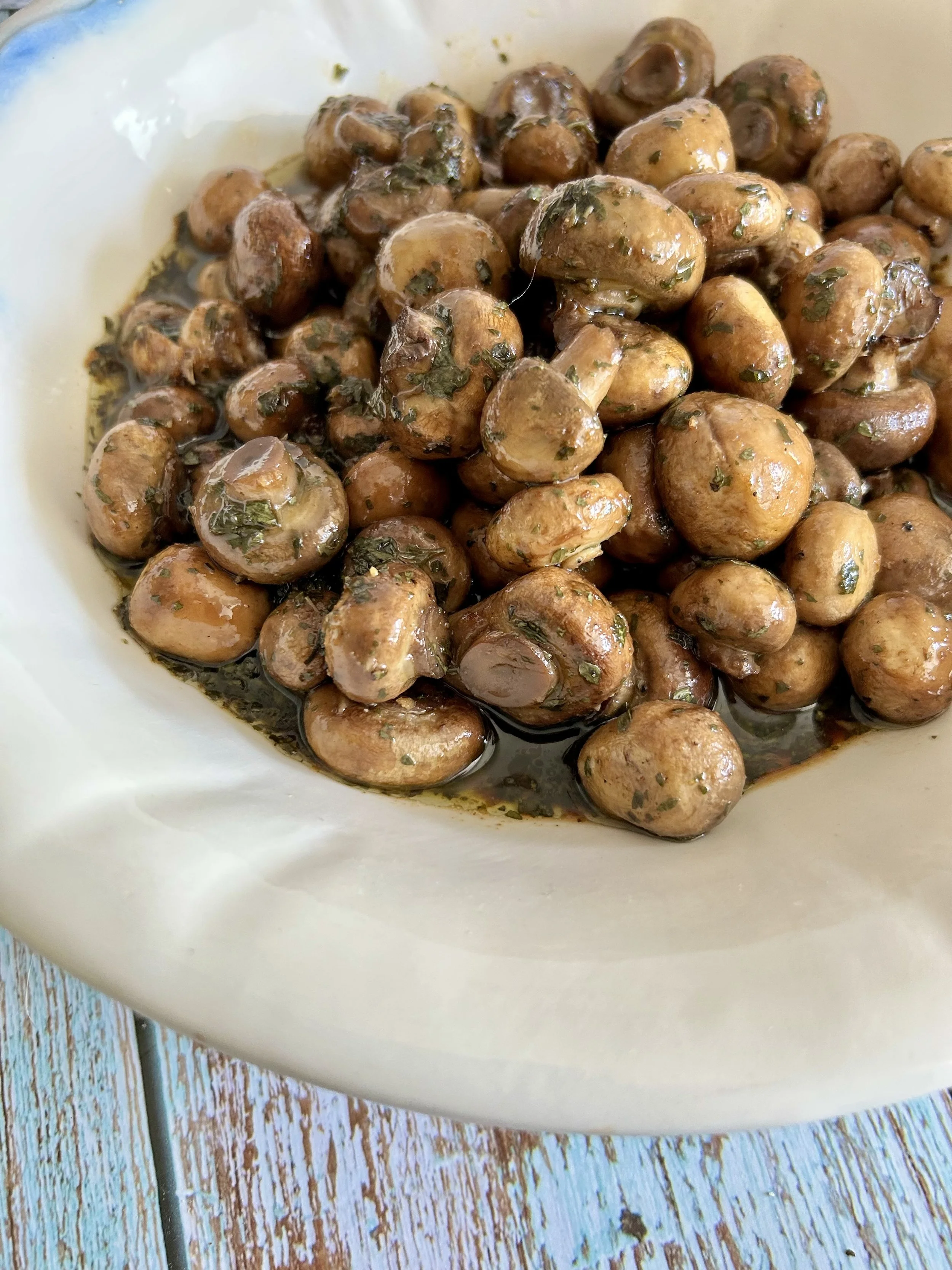 Mushrooms – 1) Using small button mushrooms are perfect for this recipe. They are the perfect portion size and look great when served. If the mushrooms are too large, but them into bite sized pieces before cooing for the first time.