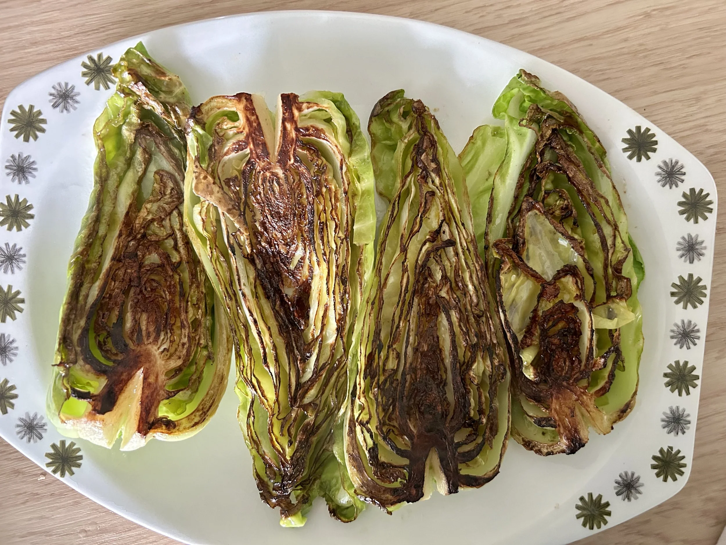 This side dish is all about the char on the cabbage and that’s an easy thing to do if you’re patient and aren’t tempted to turn the cabbage over.