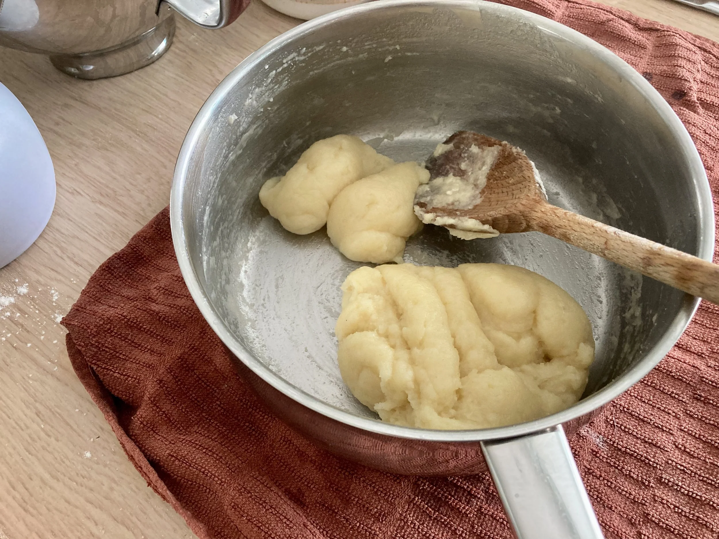 But don’t let not having a thermometer put you off making choux, it’s pretty easy to get the hang of it.