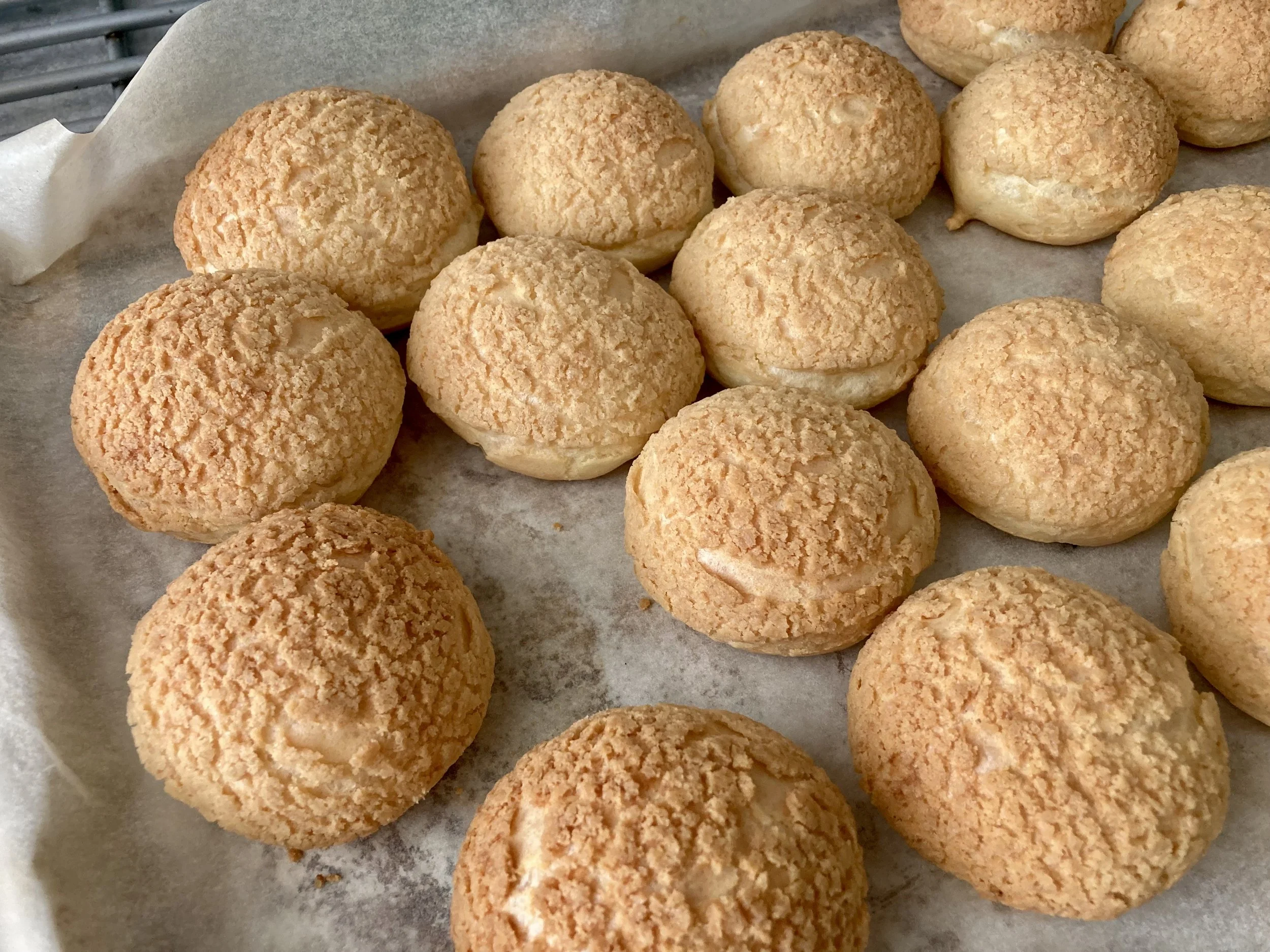 Choux Buns with Brown Sugar Craquelin Top and Vanilla Mousseline Cream