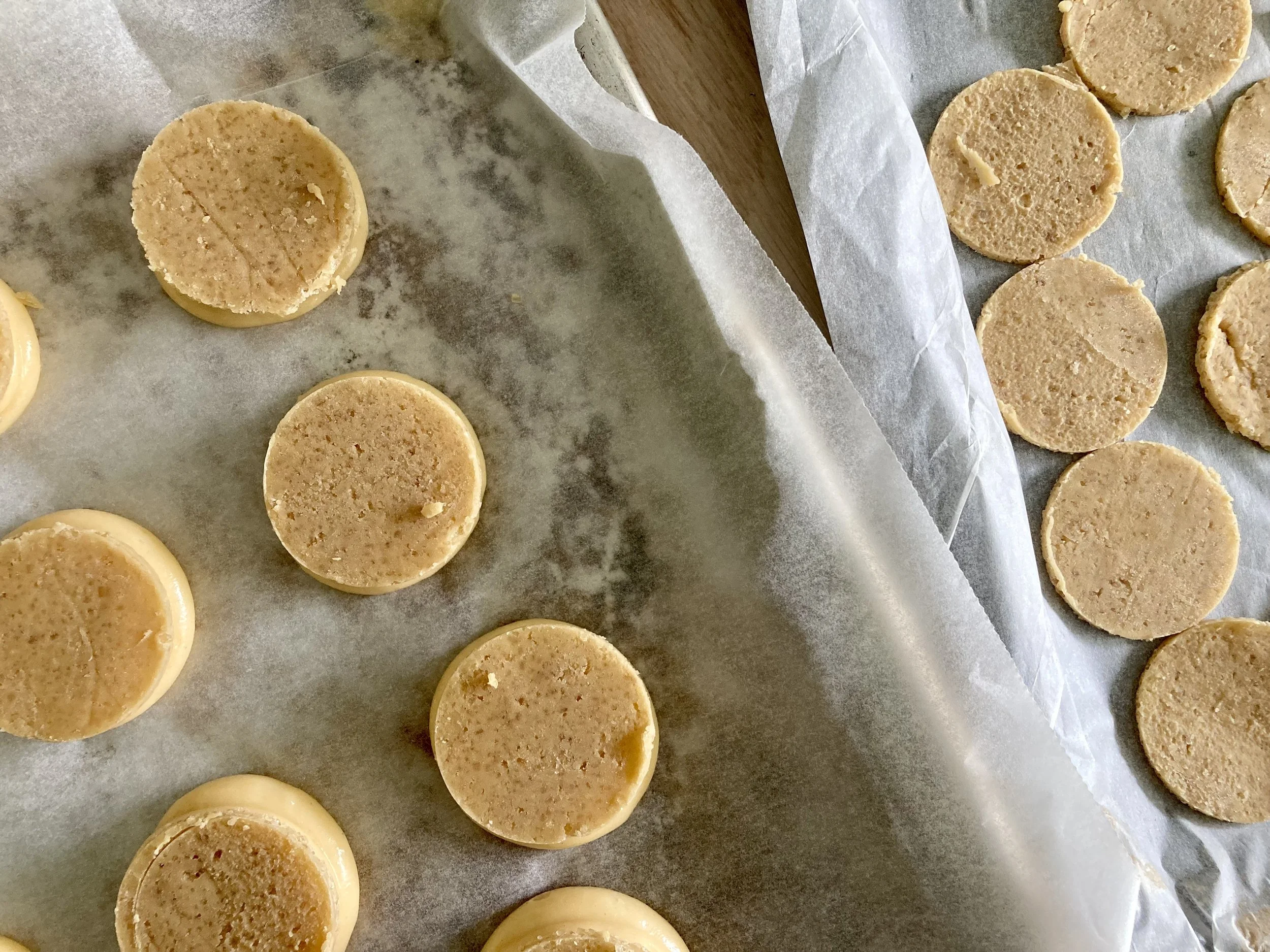 The craquelin top has to be made then frozen before being cut to size, and then back in the freezer to set to make sure they are frozen before using.