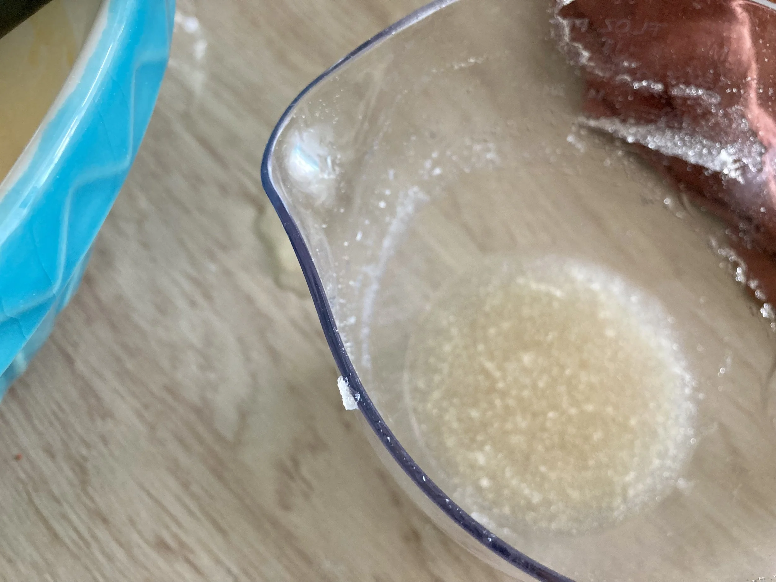 Place the gelatine granules into 60mls of cold water and mix quickly with a fork until all the granules and lumps have gone.