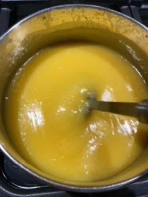 Once thick and creamy, pour the lemon curd into a sterilised jar