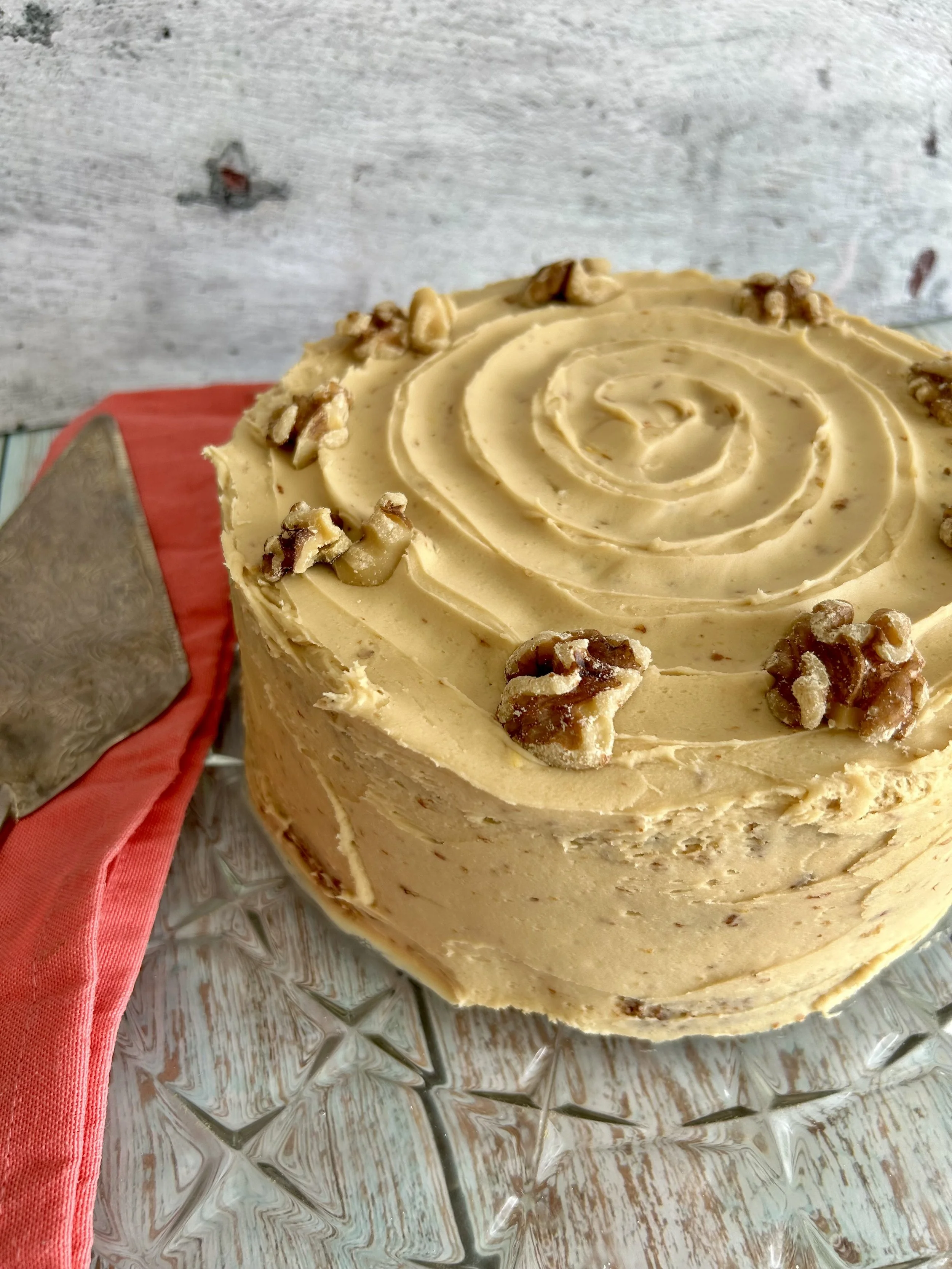 Of course, walnuts are bountiful in the cake and with even more decorating the top, it’s worth putting the oven on for.