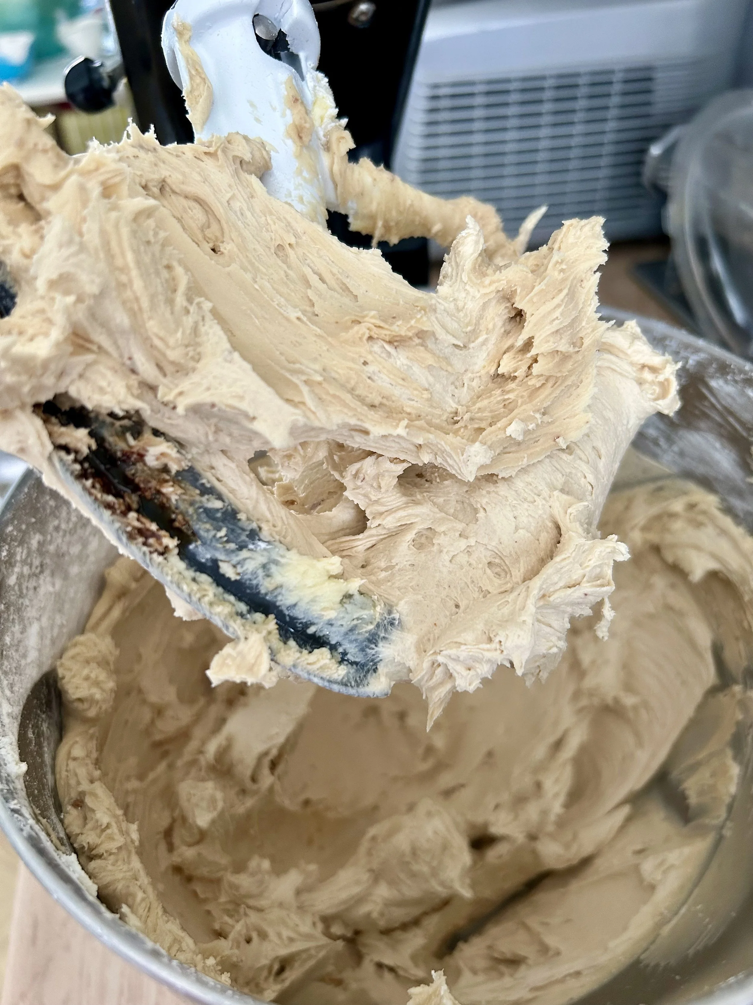 Scraping down the sides several times, beat the butter cream mixture from 5-7 minutes so the buttercream increases in volume and is very light in texture.