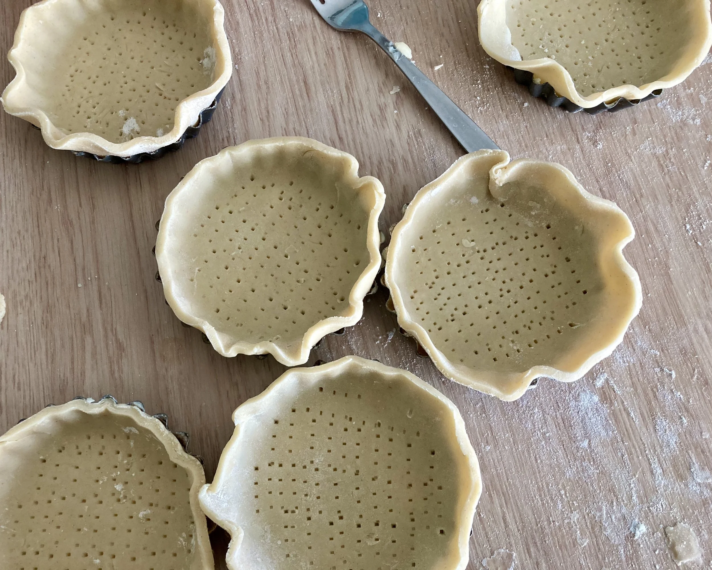 Prepare the tins – Coat the inside of small tart tins with St Helens Farm butter, then dust the inside of the tin with flour making sure to tap out any excess flour