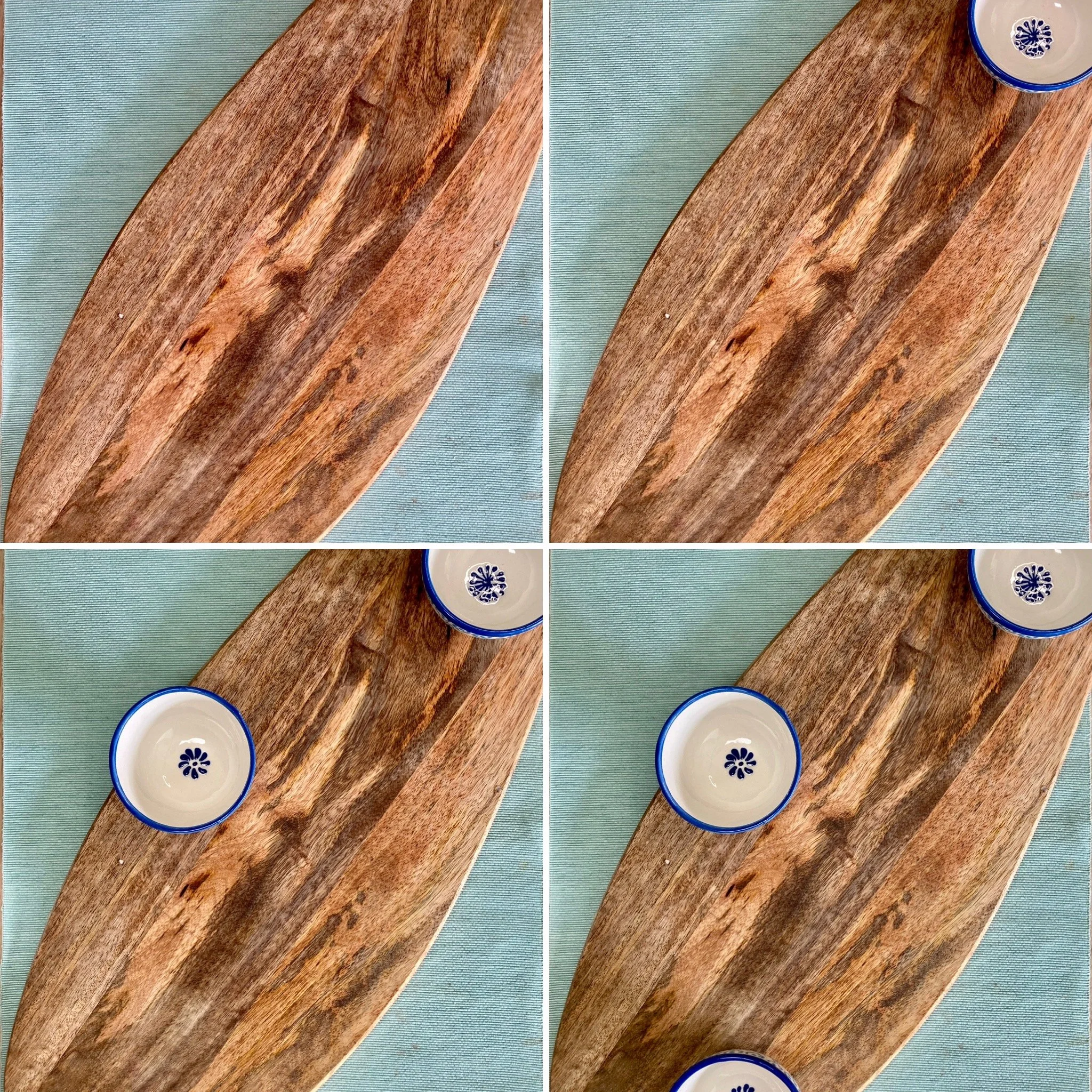 Add things one at a time, placing the items around the board so they are evenly distributed and allowing those eating it, to have easy access to every delicious thing that’s in front of them.