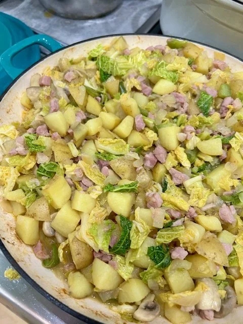 Give it a good stir and on a low to medium heat cook until the potatoes are cooked through and the cabbage is cooked.