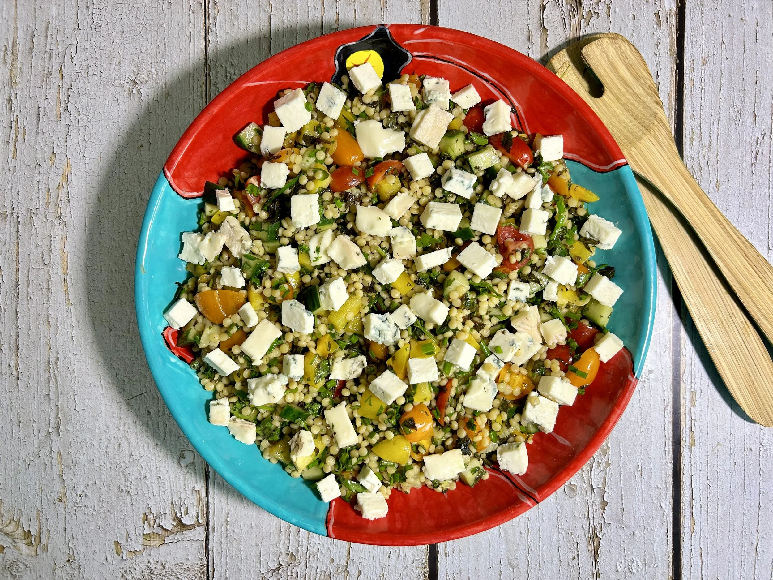 Once the couscous is cooked, drain and place in the bowl along with the vegetables.
