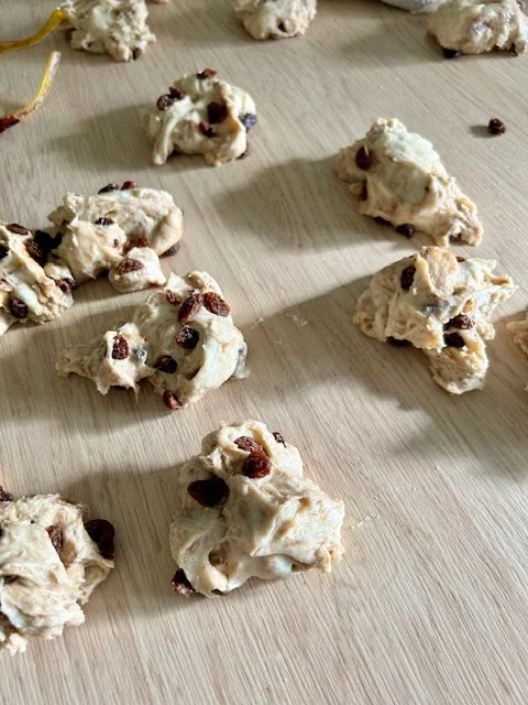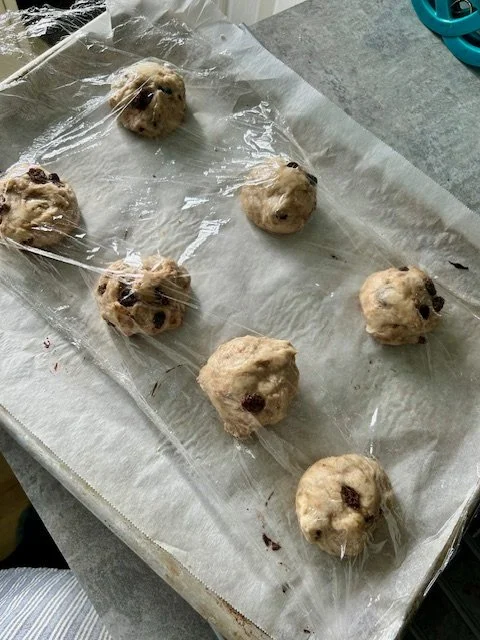 Place the trays into the hot oven and bake for 18-20m minutes until the buns have risen and are a golden brown.