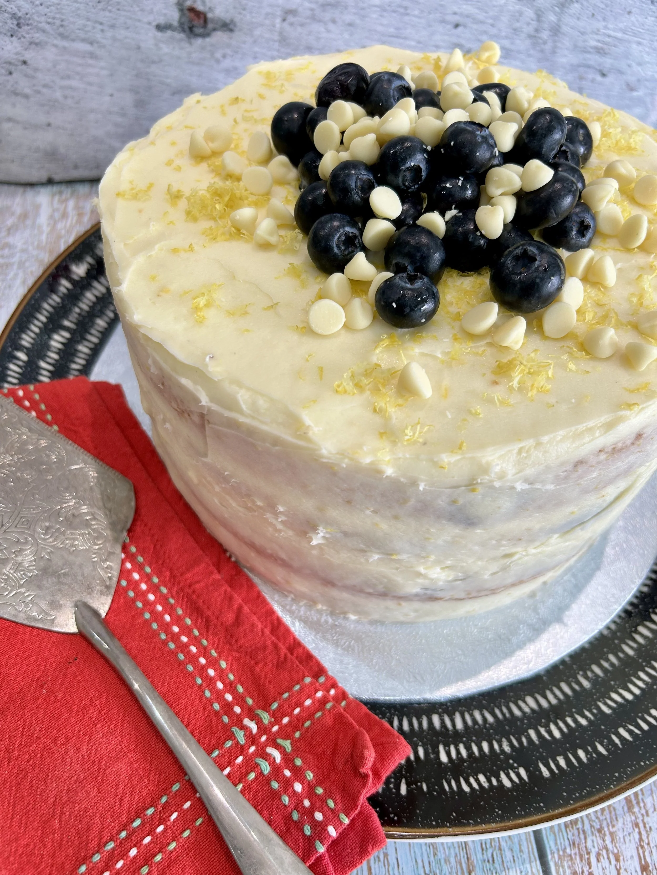 Lemon, blueberries and chocolate chips. It’s light, it’s fresh, while the cream cheese buttercream makes it luxurious too.