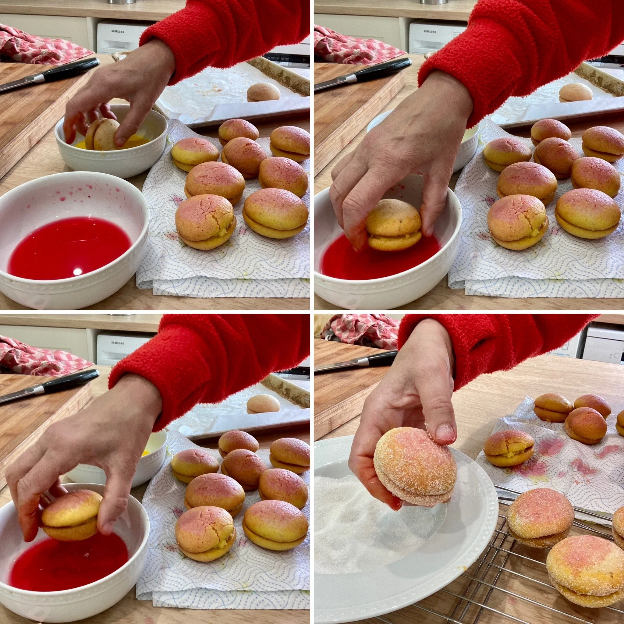 Getting the colour on the outside of the Breskvice looks difficult but couldn’t be easier to do, just adding some food colouring to cold water is the way to get the desired peachy look.