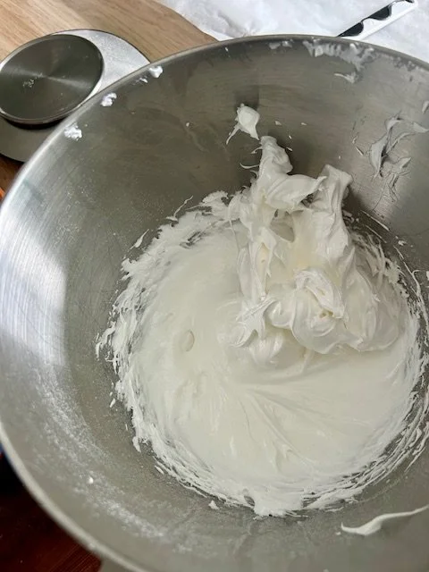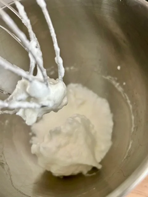 Fold the whipped double cream into the cream cheese until really well mixed together.
