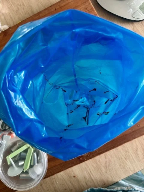 Stroke the inside of the bag with the food colouring to make thin stripes.