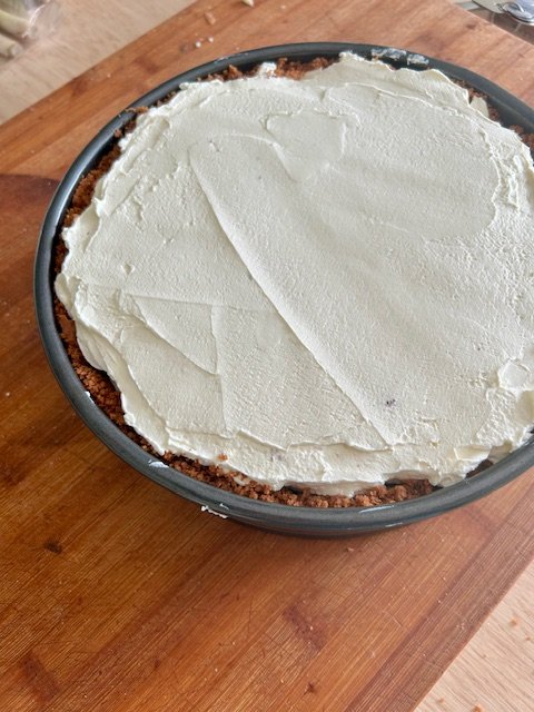 Run a very long thin knife, between the non-stick baking parchment and the bottom of the cheesecake, do this very carefully so the base doesn’t break.