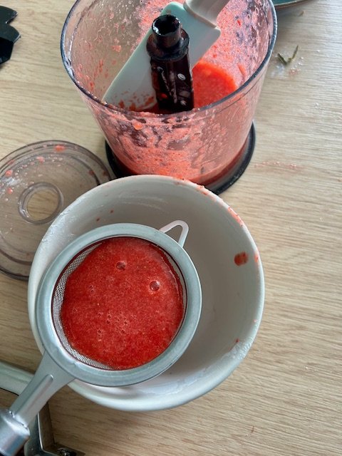 Push the strawberry coolie through the sieve, removing all of the pips.