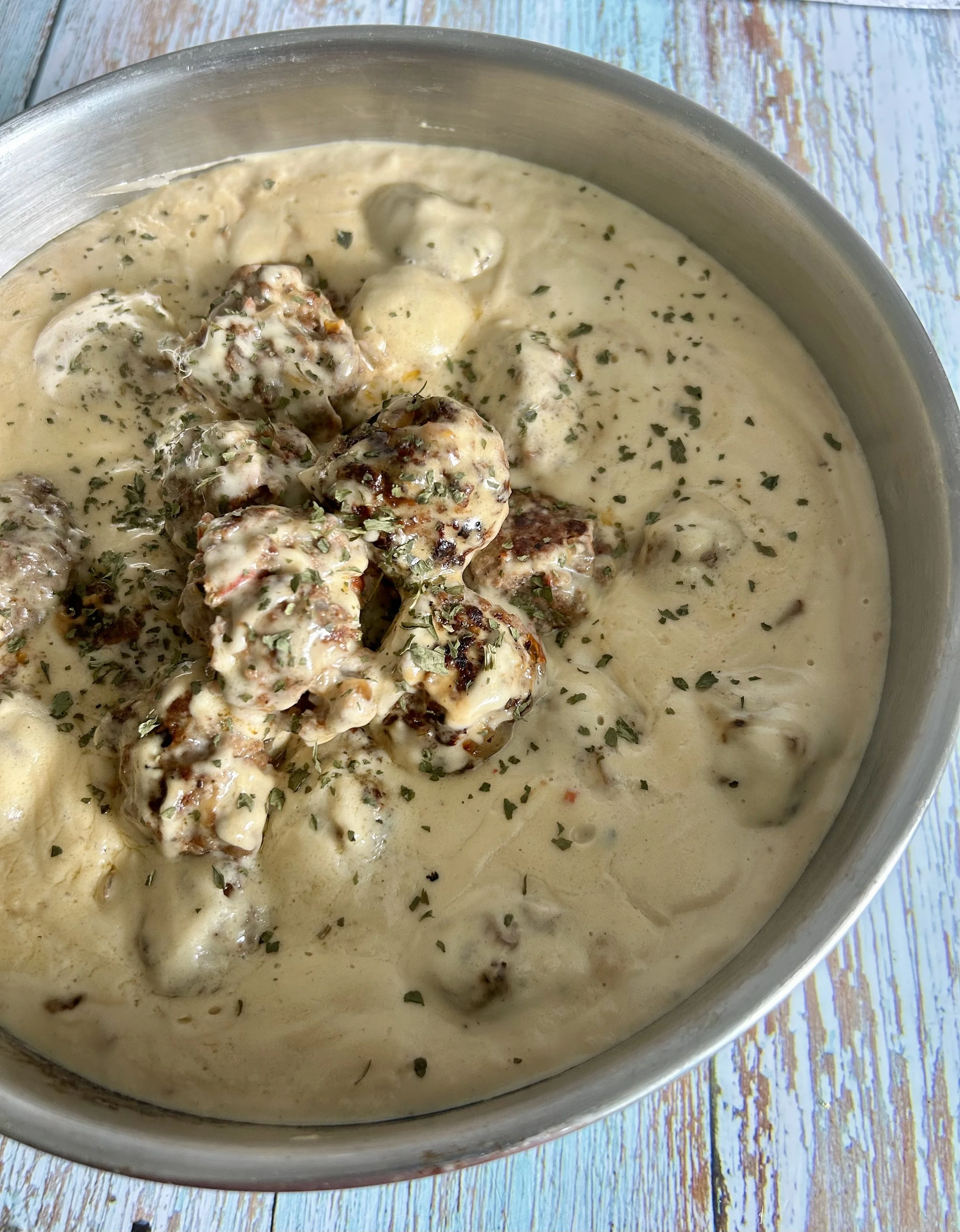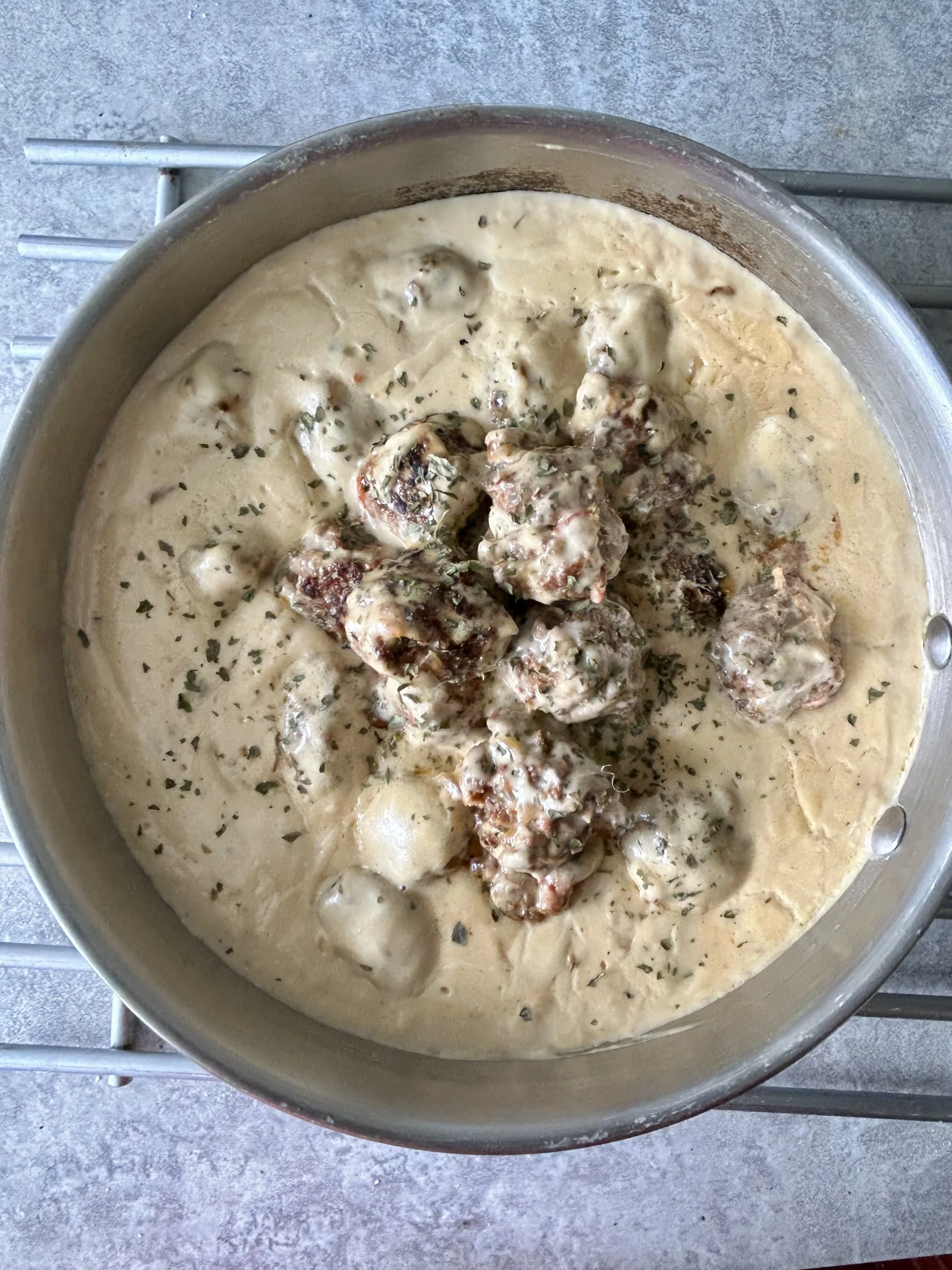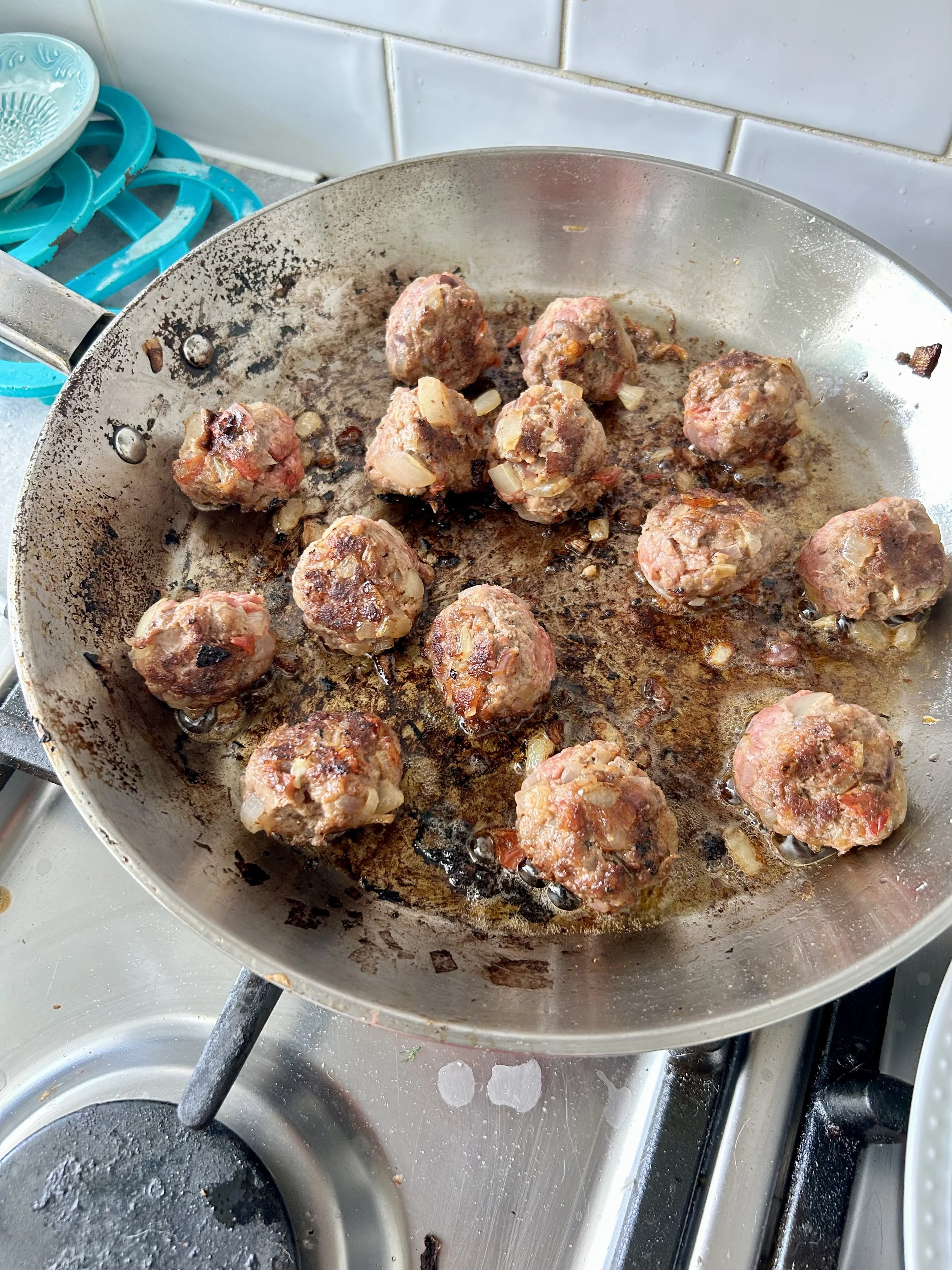 Don’t over crowd the pan, cook the meatballs in batches, removing them to a plate once they’re cooked.