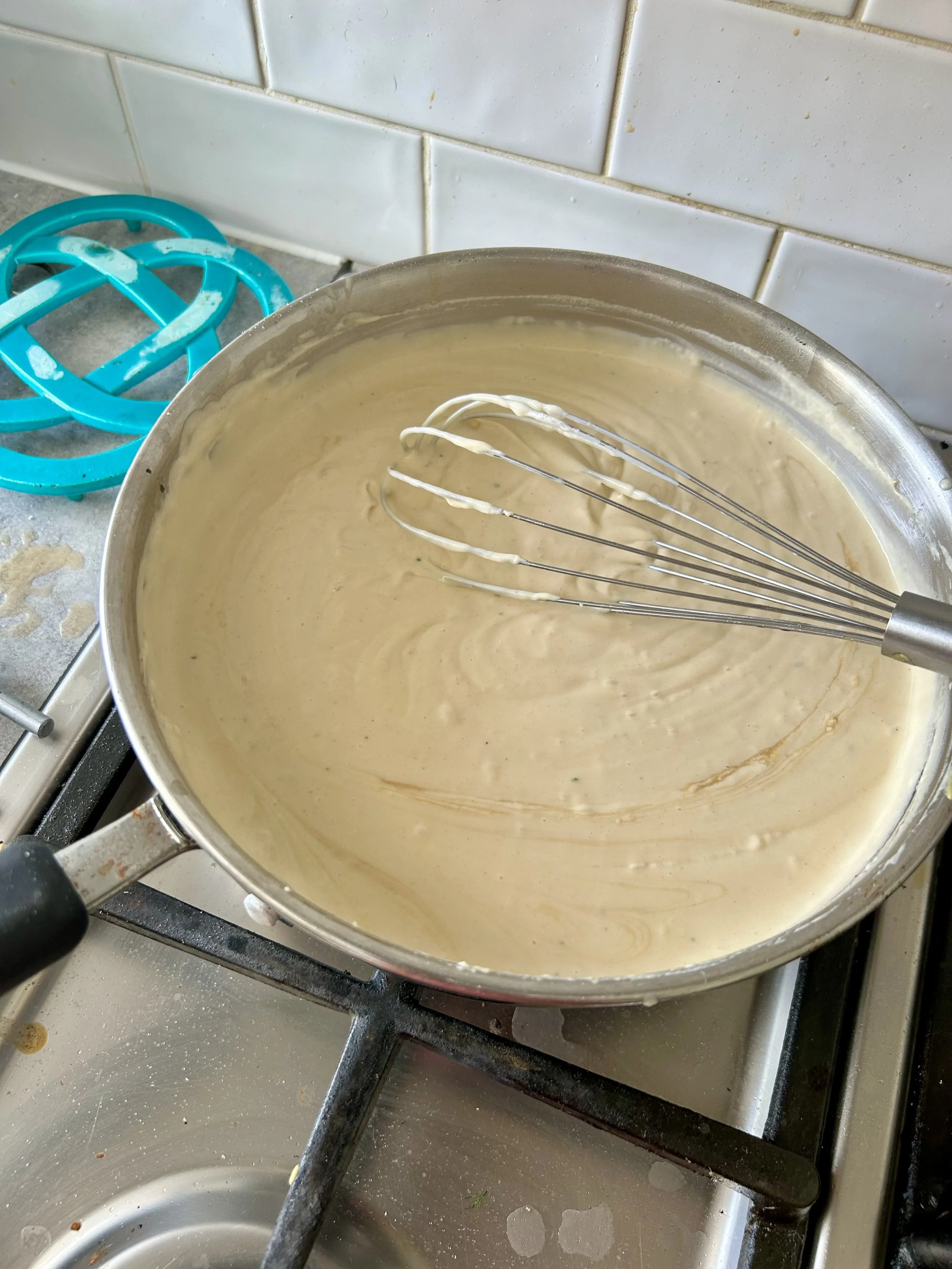 Let the mixture cook on a low heat for 2 minutes, stirring as you go so the roux mixture doesn’t burn.