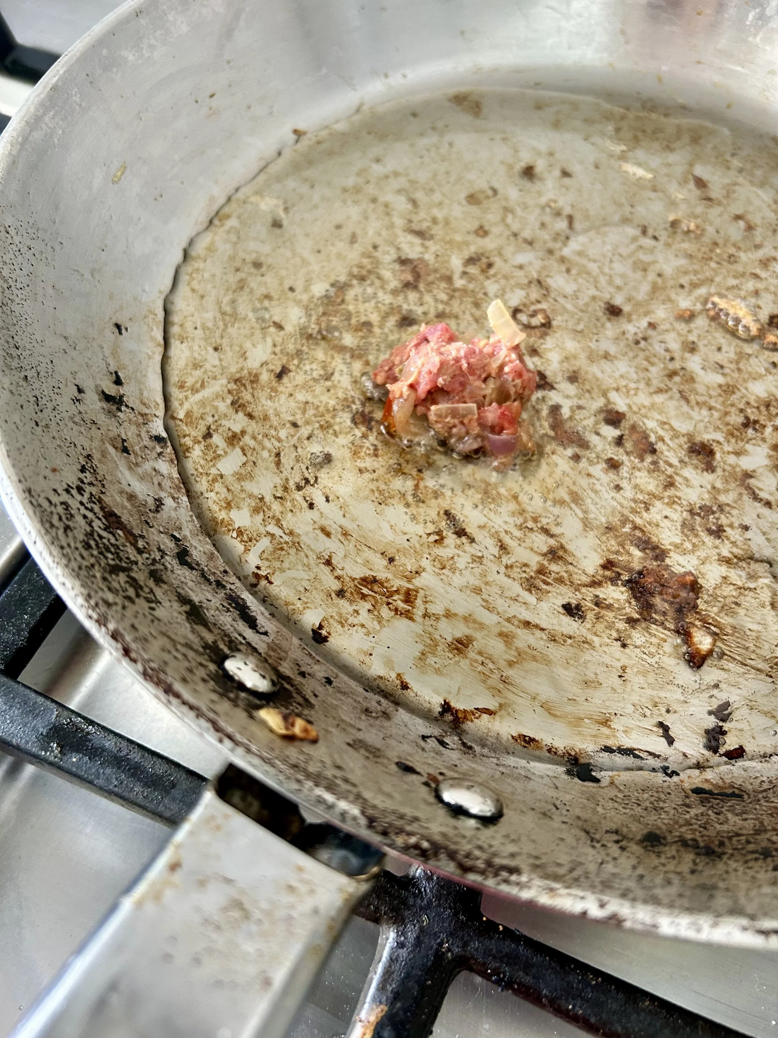 Cook off a small amount of the mixture as a taste test. This is the time to adjust the seasoning.