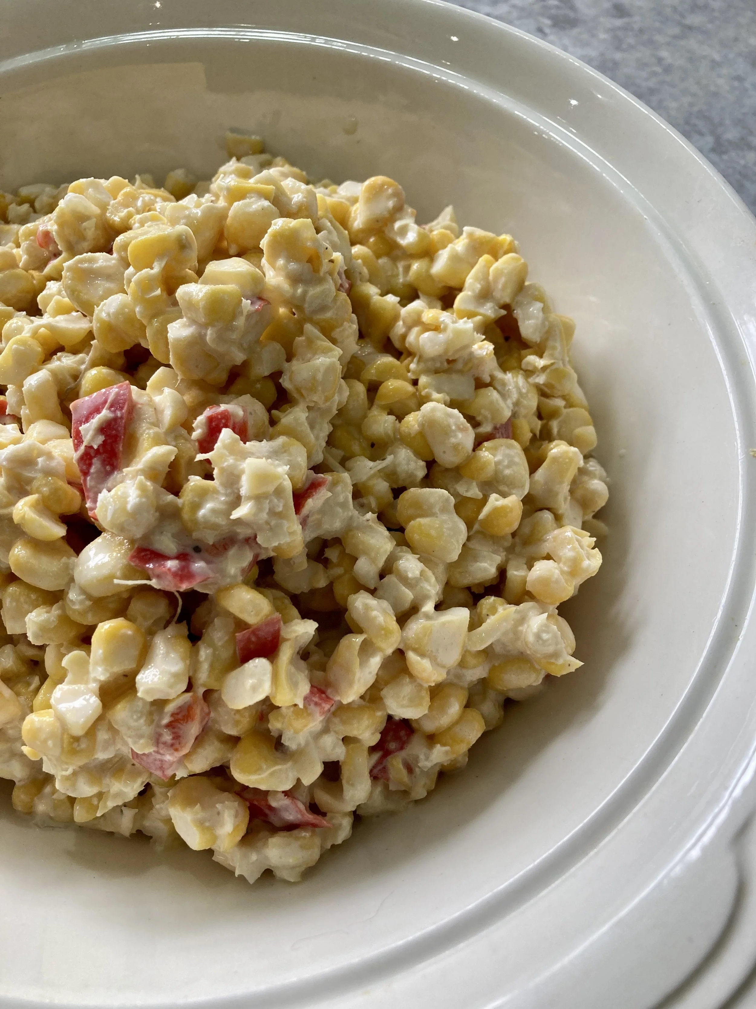 The corn is ready when what’s left is a creamy liquid and the corn still has a small bite to it.