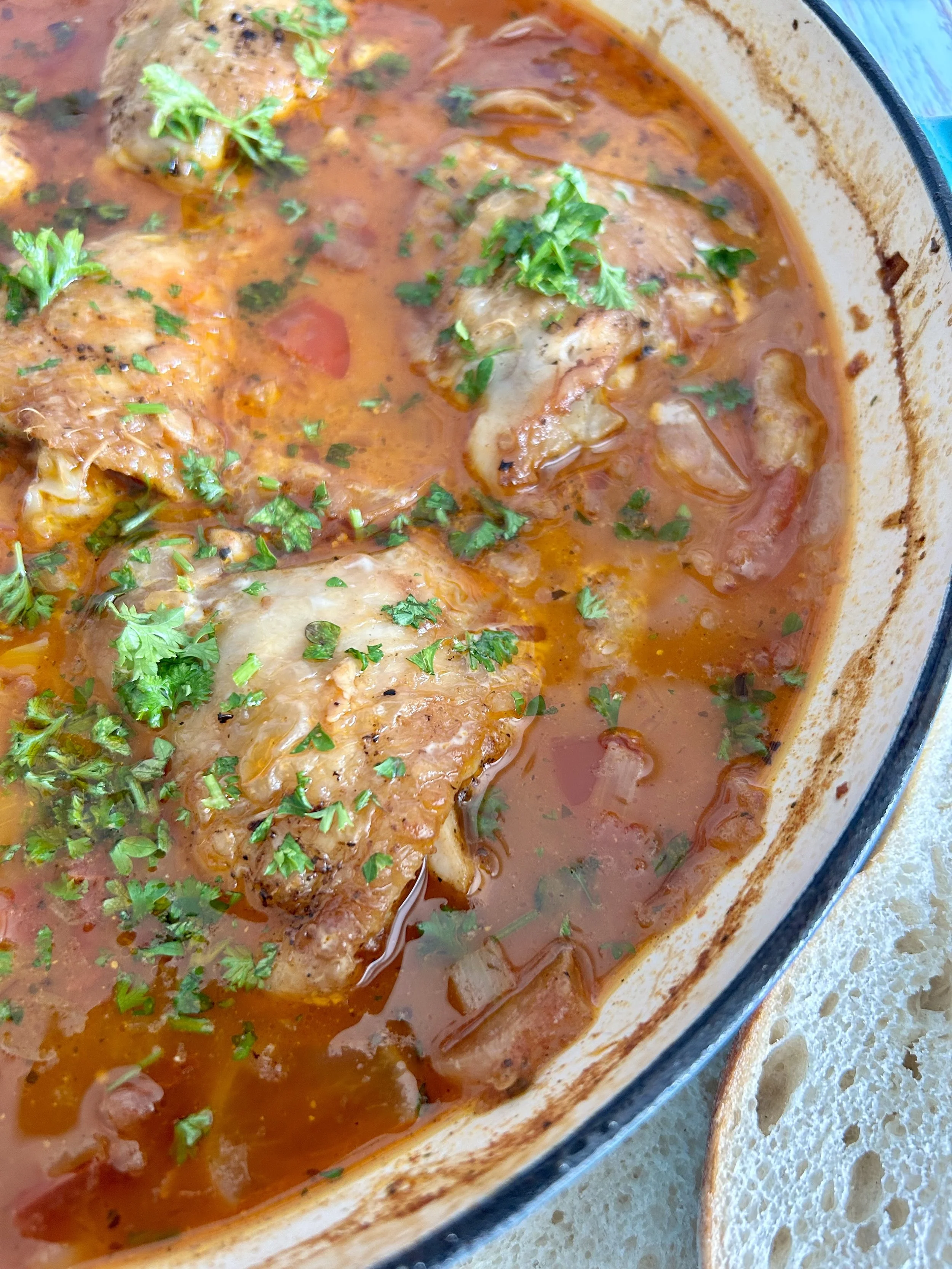 I use them bone in, in recipes such as this, or bone out, if I’m needing small pieces of chicken for stews or stir fries etc.