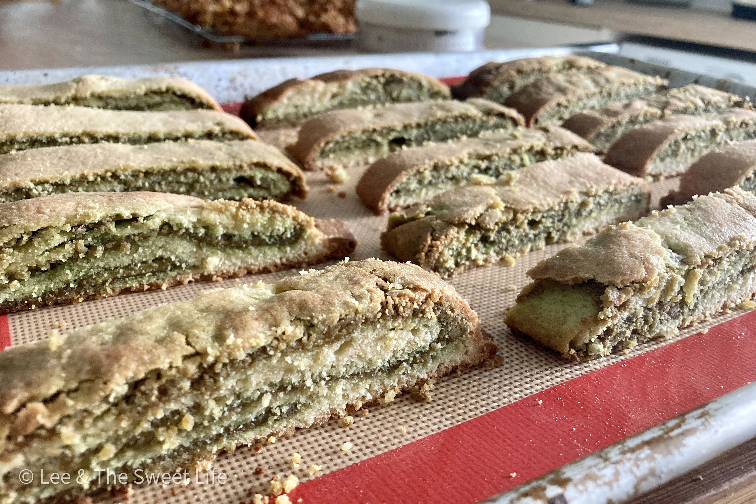 Oh my, biscotti with layers of pistachio cream marbled throughout!