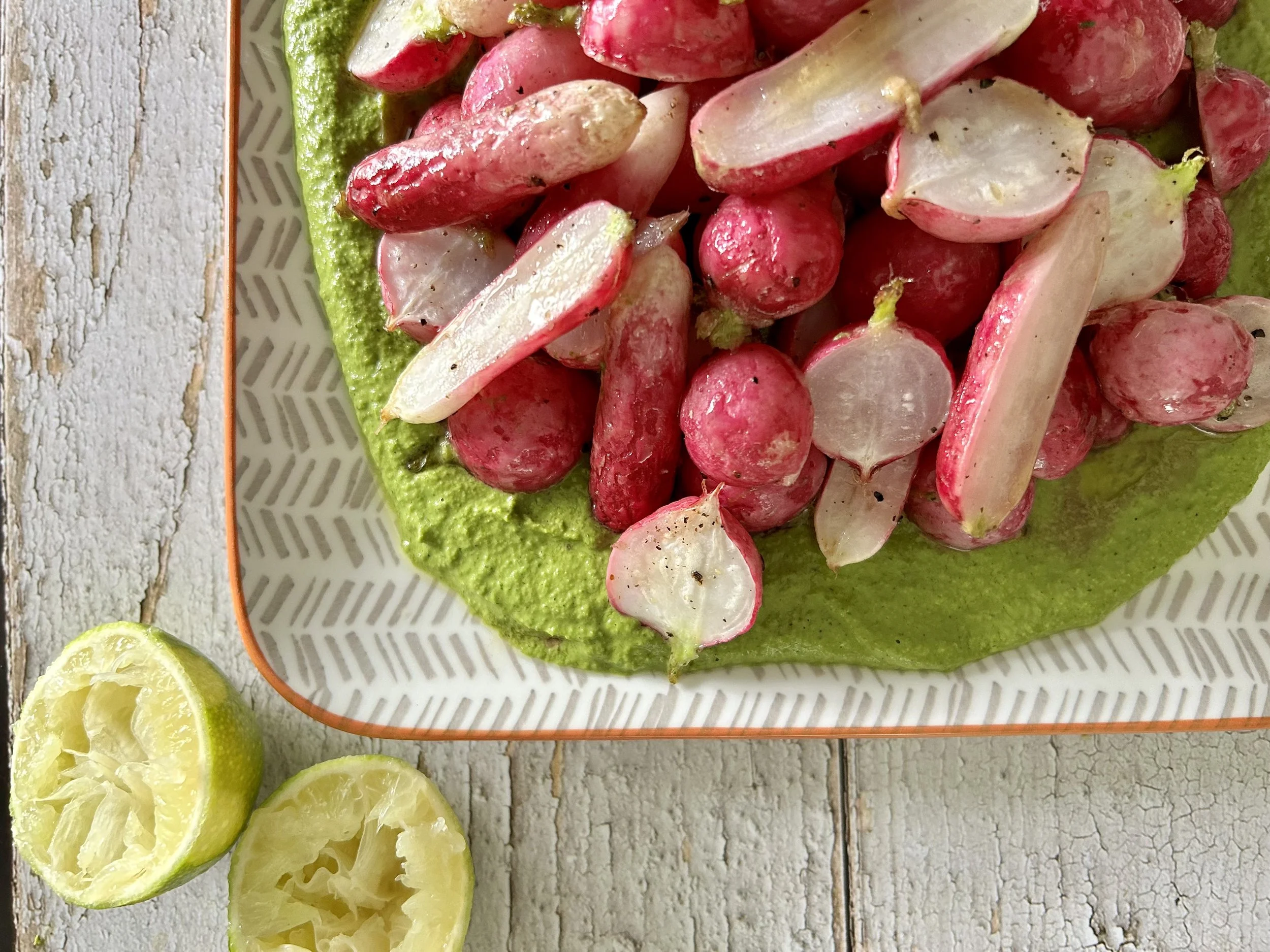 Roasted Radishes on Herbed Tahini Sauce