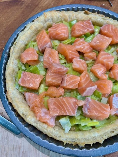 I love using salmon in a way that doesn’t involve frying it and as I love making pastry, I’m on to a winner.